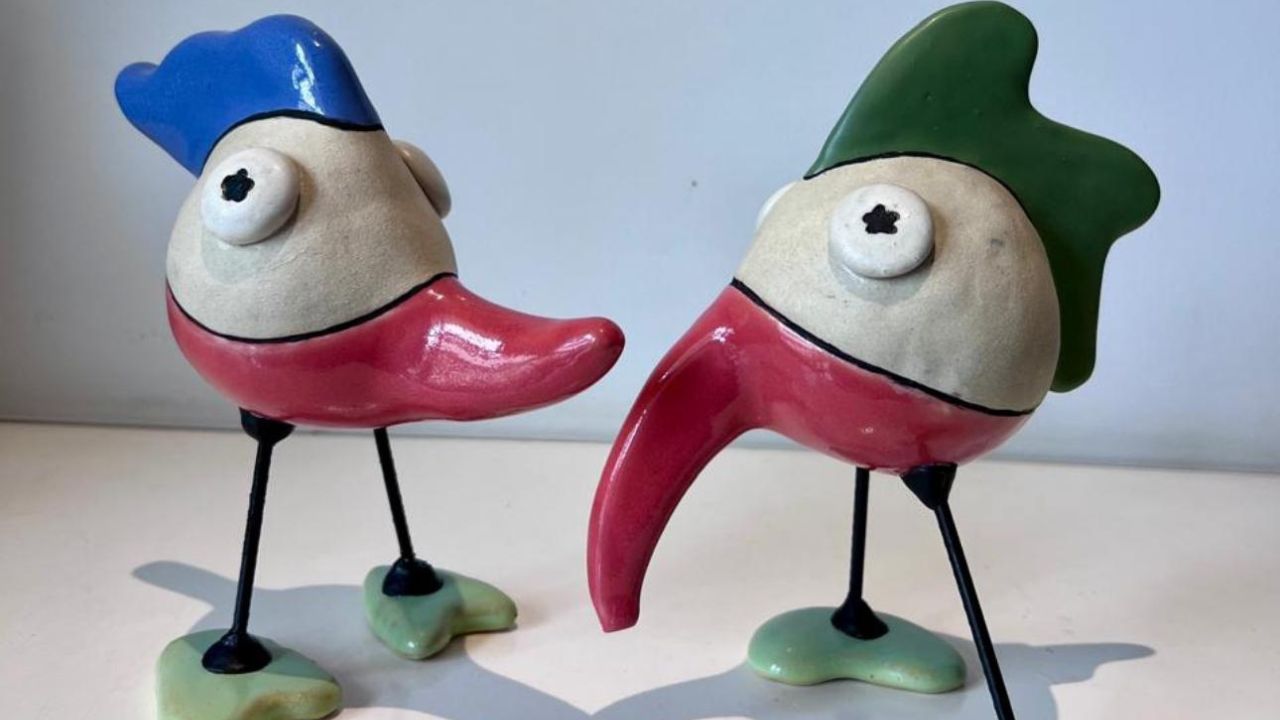 Il gallo e la gallina, elementi ricorrenti nelle opere di Branco, abbandonano la bidimensionalità del quadro per prendere forma nello spazio attraverso le ceramiche di Adriana Chamma. Il disegno si libera dalla superficie e, nel suo farsi tridimensionale, diventa corpo, struttura ed equilibrio. Linee continue e curve raffinate rivelano una costruzione attenta e misurata, in cui il gesto artistico coniuga rigore e leggerezza, ponendo la forma al centro della ricerca. In questo processo, il gallo e la gallina smettono di essere semplici figure narrative e si trasformano in simboli di riconciliazione. Le sculture evocano l’incontro, la coesistenza e l’equilibrio, mettendo in dialogo materia, segno e spazio. Invitano lo sguardo a rallentare e a soffermarsi, riconoscendo nella forma costruita un campo sensibile in cui presenza, silenzio e permanenza si intrecciano.